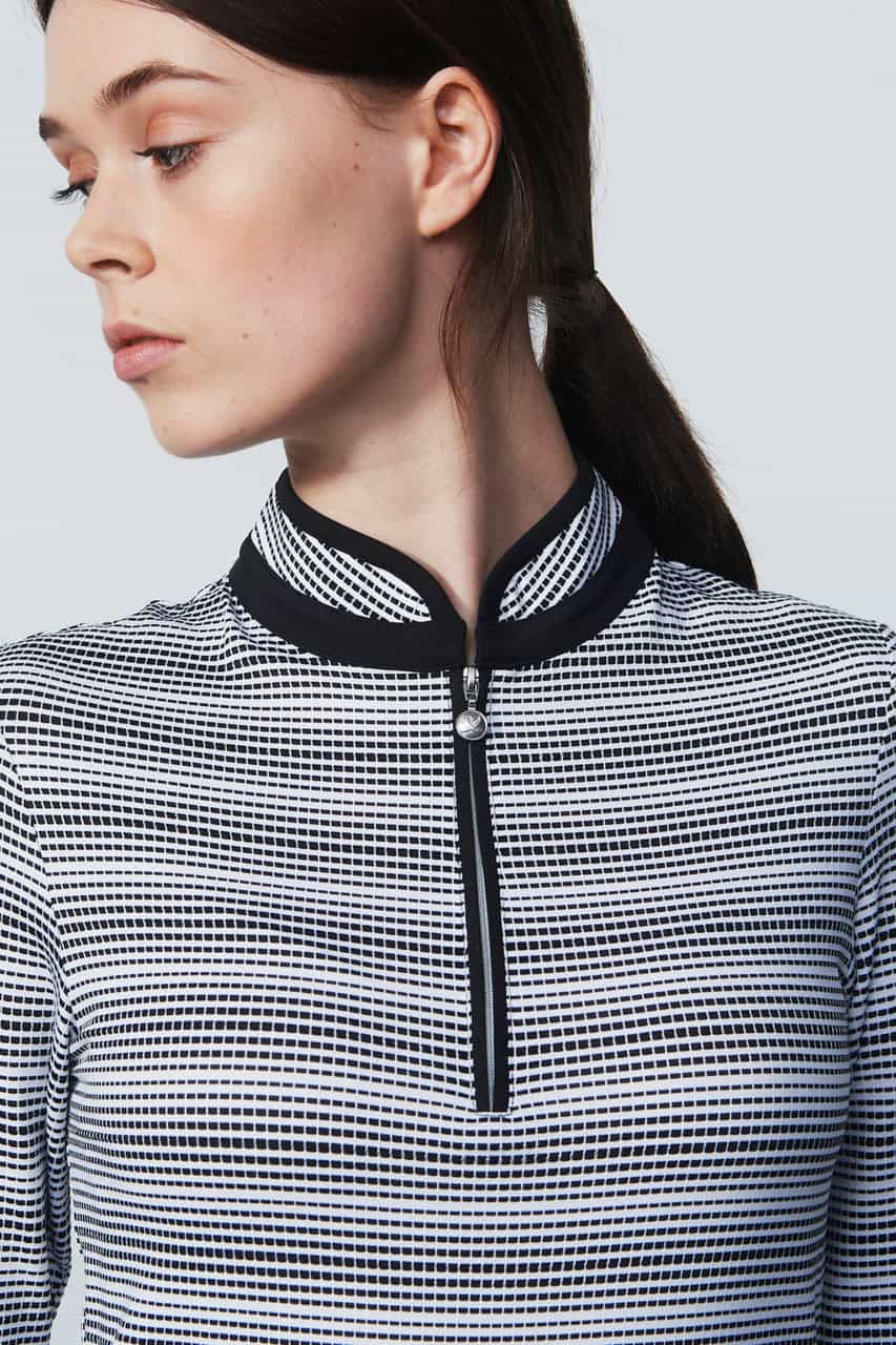 This long-sleeve dress combines functionality with a classic striped design. The half-zip front and contrast detailing create a sporty yet refined look. Made from quick-dry stretch jersey, it’s designed for active lifestyles.