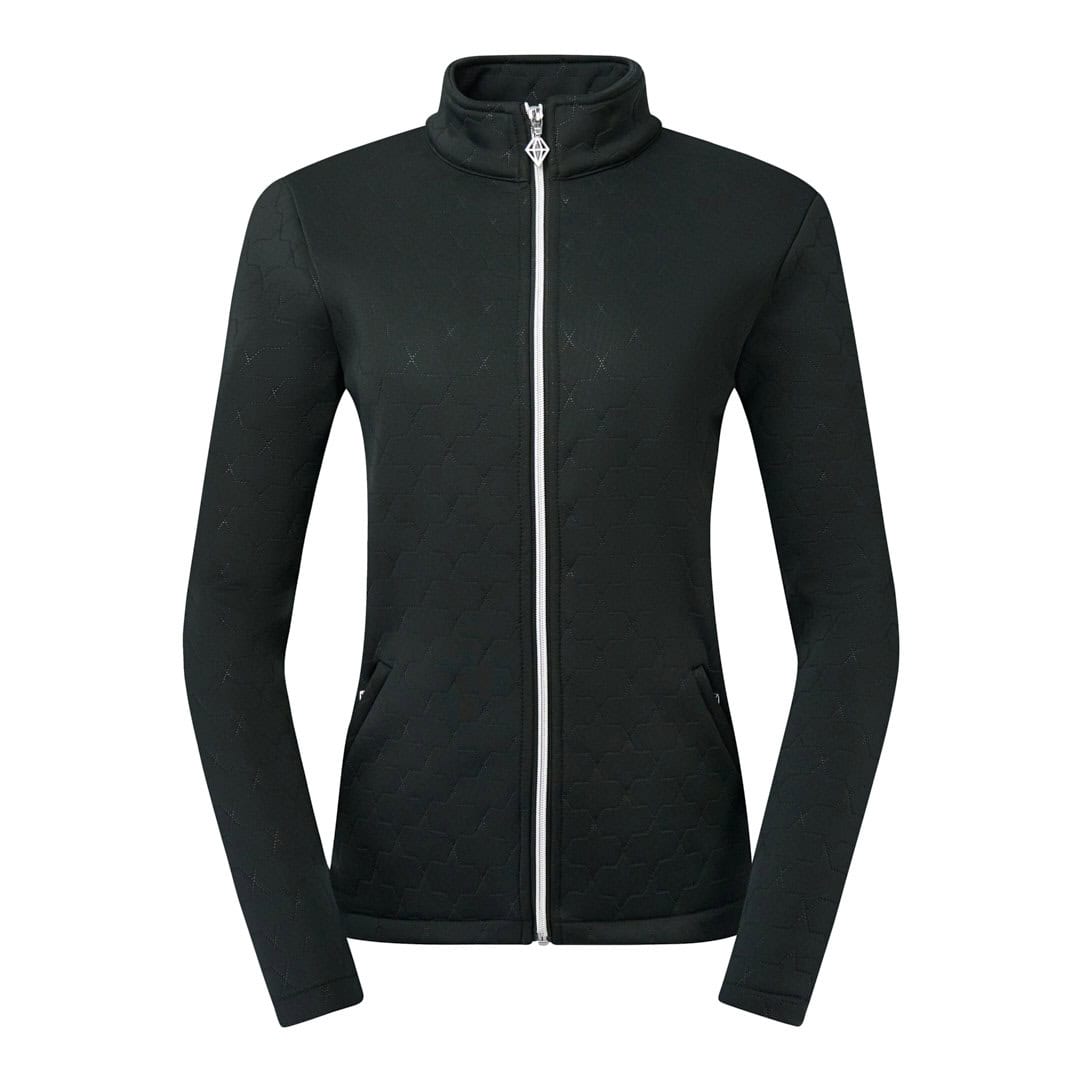 A sleek, fully lined textured jacket designed for warmth, polish, and easy movement on and off the course. Crafted with anti-crease, anti-static fabric and built-in 4-way stretch, it offers comfort, mobility, and a consistently neat appearance throughout the day. The regular fit creates a flattering silhouette, while the generous pockets add practical functionality. A versatile layering piece that pairs beautifully with Quiet Glade, Woven Chantilly, and Perennial Fields.